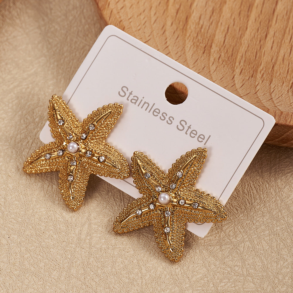 Aretes de estrella de mar , acero inoxidable.