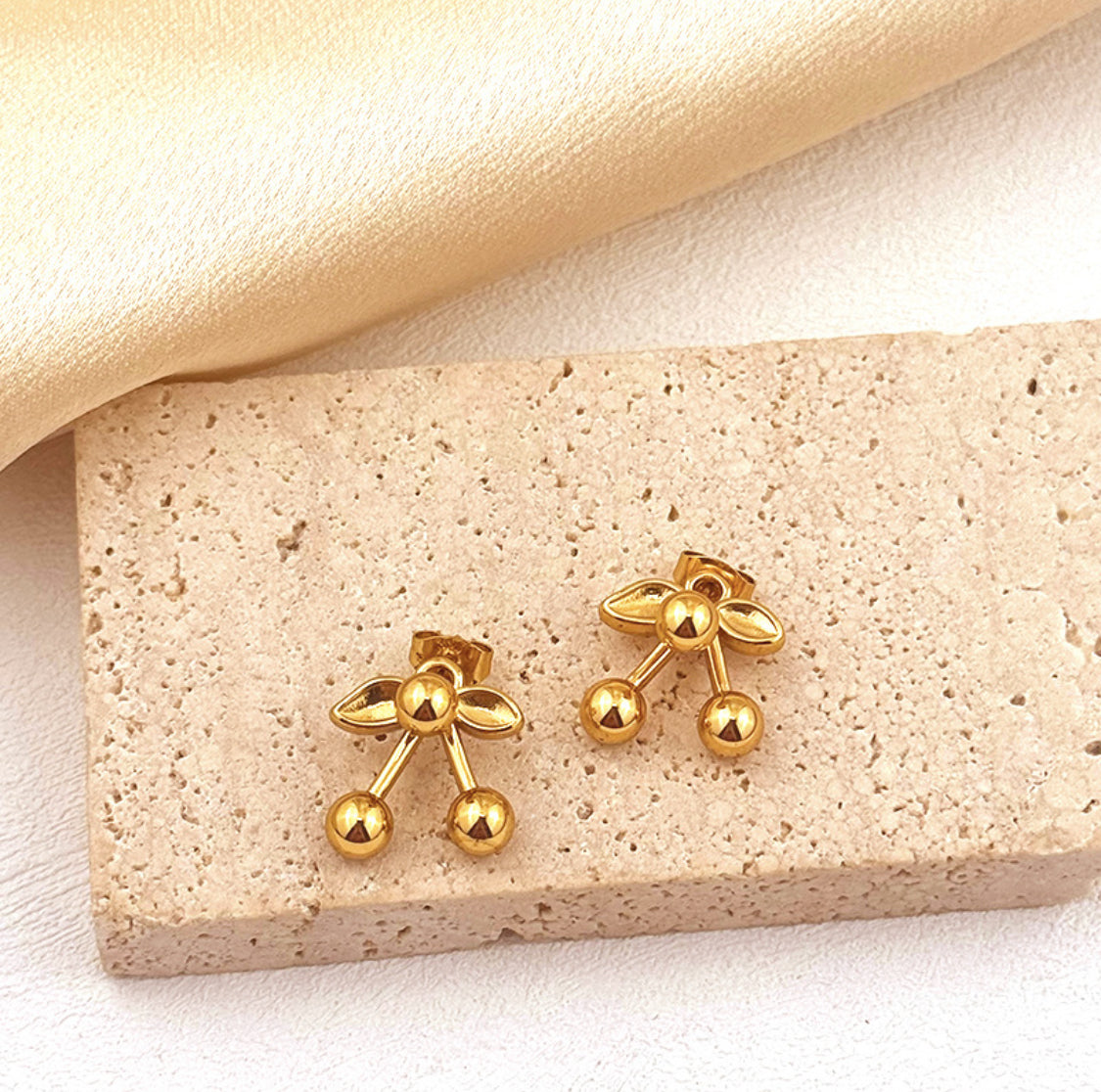 Aretes cerezas, acero inoxidable.