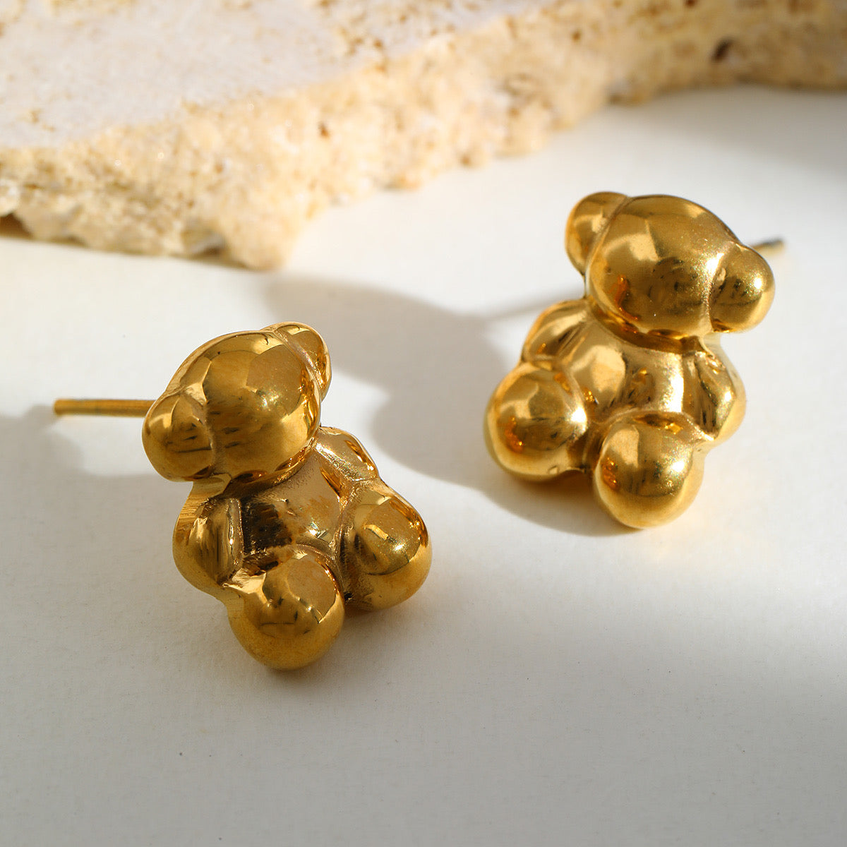 Aretes ositos, acero inoxidable.