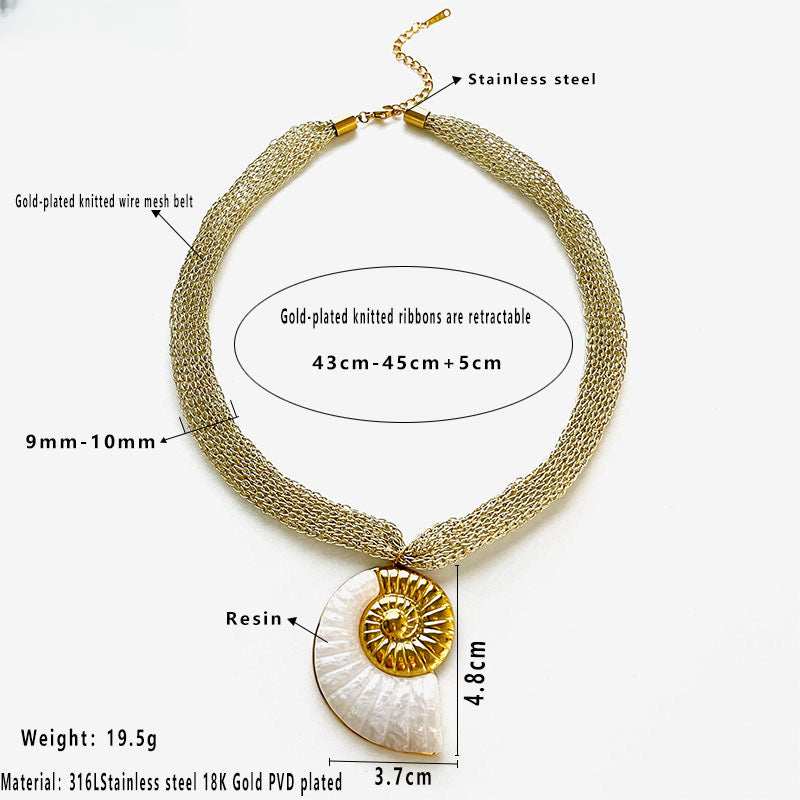 Collar de tela, con colgante de caracol de acero inoxidable.