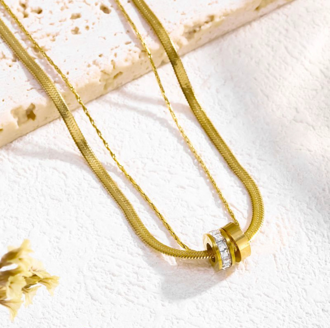 Collar doble con colgantes circulares, Acero Inoxidable.